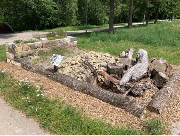 Die Insektenhotels ergänzen nun die 2024 angelegten Blühflächen von „Natur nah dran“