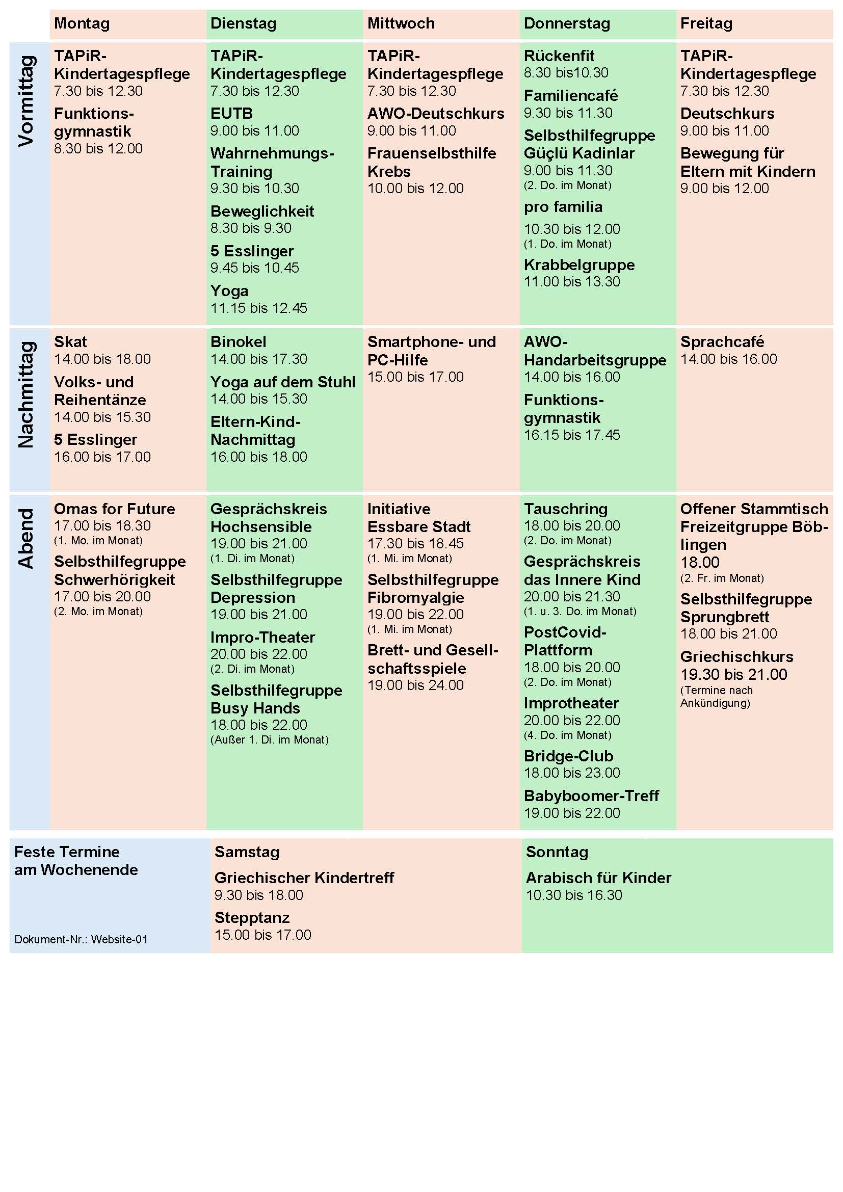 - Hauseigene Kursangebote v.a. für junge Familien und Senior/innen