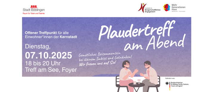 Plaudertreff am Abend - Offener Treffpunkt für alle Einwohner*innen der Kernstadt