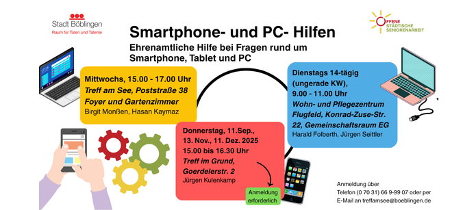 Ehrenamtliche Hilfe bei Fragen rund um Smartphone und Tablet.