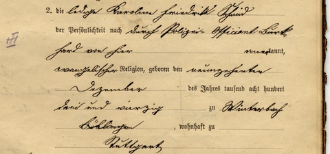 War das wirklich so? Hier soll ein Blick in das Böblinger Eheregister von 1876 weiterhelfen, das alle in jenem Jahr in Böblingen geschlossenen Ehen verzeichnet. Es gehört zu den älteren Standesamtsunterlagen, die sich im Stadtarchiv befinden.