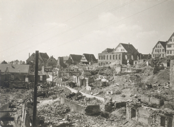Um das Zitat zu verstehen, muss man in die Zeit des Kriegsendes 1945 zurückblenden. Böblingen lag damals, wie so viele Städte am Boden. Rund 40% der Stadt waren zerstört. Es fehlte an Lebensmitteln, Wohnraum und Heizstoff.