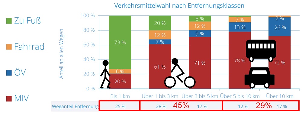 Modal Split der Böblinger Bürgerschaft abhängig von der Entfernung