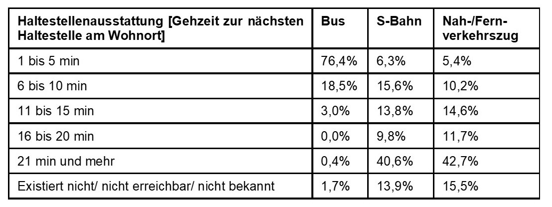 Haltestellenausstattung [Gehzeit zur nächsten Haltestelle am Wohnort]