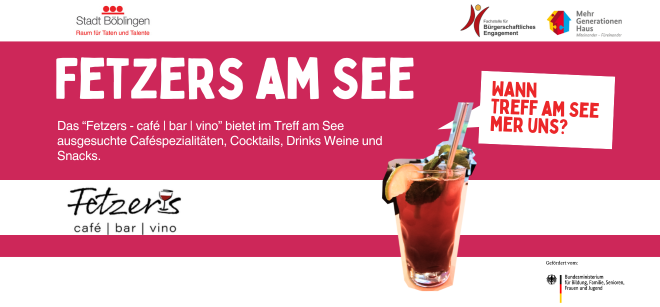 Der Treff am See ist der zentrale Bürgertreff in Böblingen. Alle Generationen und Kulturen sind hier willkommen. Hier können Menschen gemeinsam ihre Freizeit verbringen, an Kursen teilnehmen oder sich ehrenamtlich engagieren.