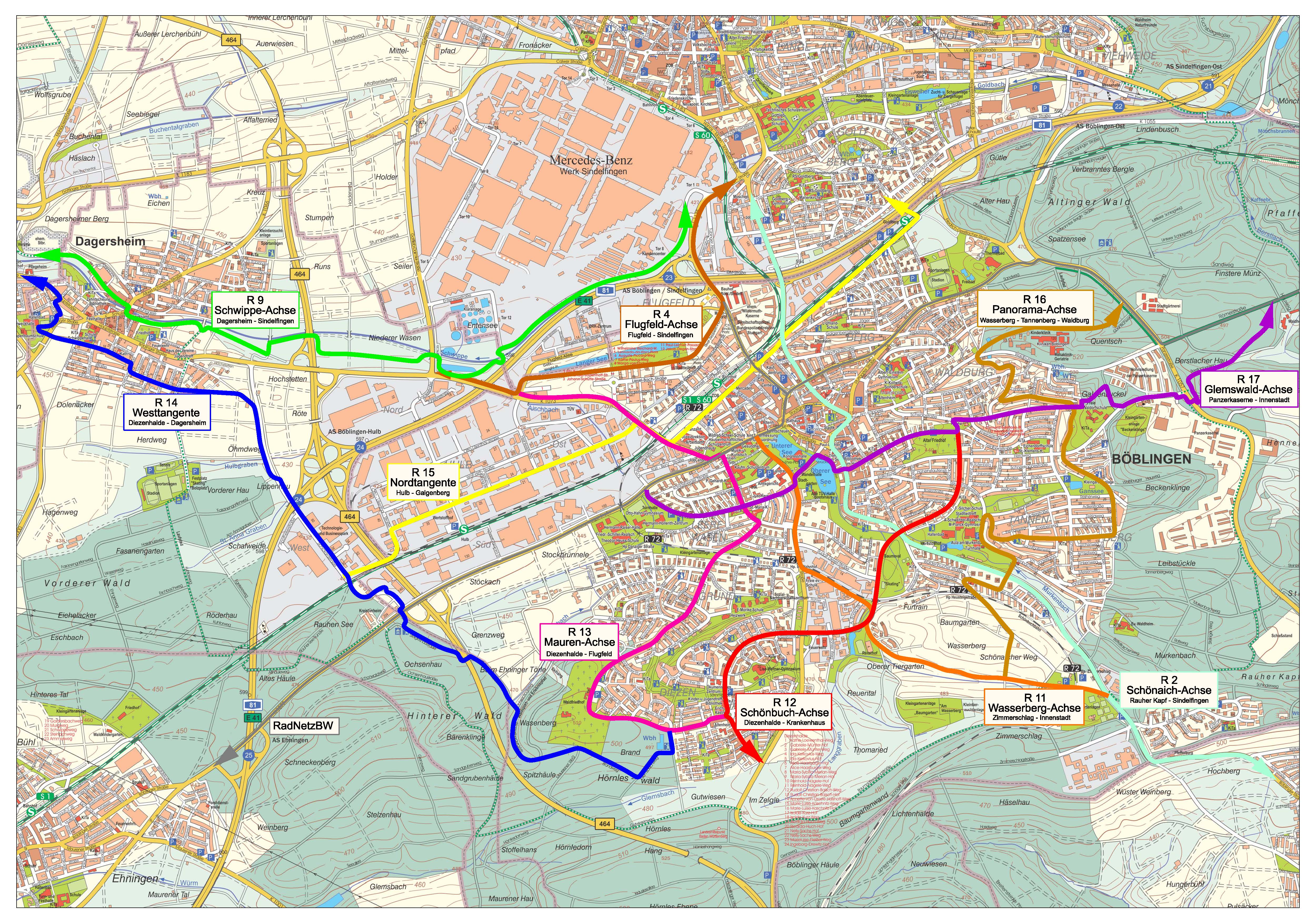 Seit 2019 gibt es den ersten Radschnellweg Baden-Württembergs der von Stuttgart nach Böblingen führt sowie seit 2020 die Fortsetzung von Böblingen nach Ehningen. Die Verbindung der beiden Teilstücke ist in der Machbarkeitsstudie des Landkreises dargestellt und wird durch die Kommunen Böblingen und Sindelfingen weiter geprüft. Die Machbarkeitsstudie beinhaltet zwei Achsen für Radschnellwege in/um Böblingen: Stuttgart – Herrenberg und Renningen – Weil im Schönbuch. Hier gelangen Sie zur Machbarkeitsstudie.