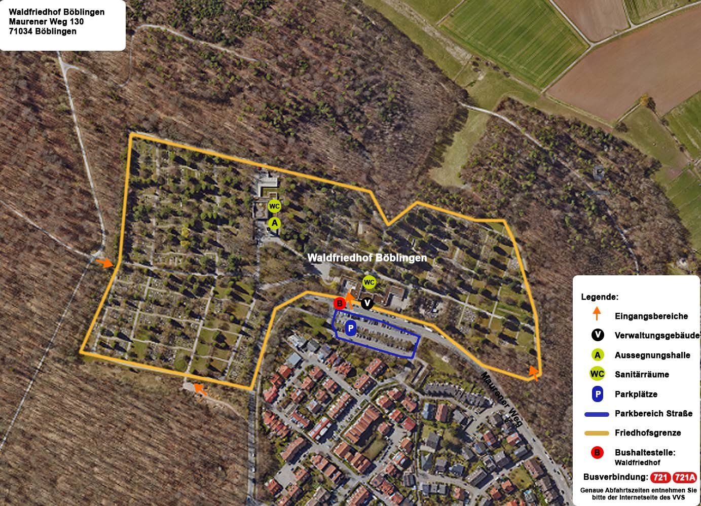 Um den Wunsch nach pflegefreien Grabstätten nachzukommen, bietet die Stadt Böblingen folgende pflegefreie Bestattungsformen an: Urnengemeinschaftsanlage, Kolumbarium, Baumbestattungen und die Option, ein Urnenwahl- oder Urnenreihengrab mit einer Ganzabdeckung zu gestalten. Außerdem besteht die Möglichkeit, ein Rasengrab oder eine Bestattung im anonymen Urnenreihengrab auszuwählen. Zur Pflegeerleichterung an Wahlgrabstätten und Reihengrabstätten Erdbestattung ist eine 50% Abdeckung möglich.