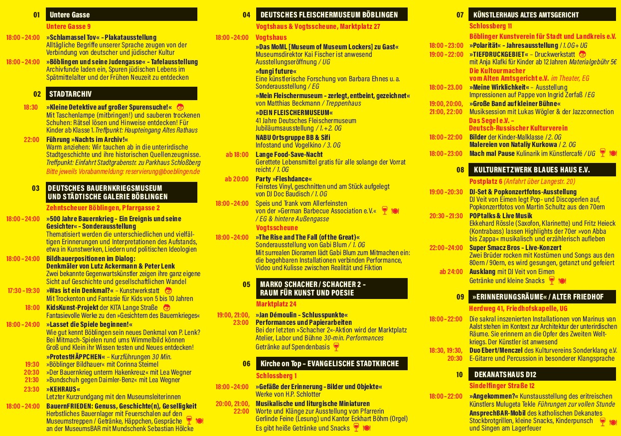 Hier finden Sie den Flyer digital (1013 KiB) der Langen Nacht der Museen Böblingen/Sindelfingen.