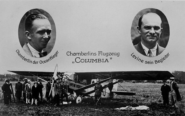 Am 4.Juni 1927 konnten nun endlich auch Chamberlin und Levine, der übrigens keine Flugerfahrung hatte, starten. Das Ziel in Deutschland, die Hauptstadt Berlin, hatte Chamberlin für sich festgelegt, ohne es der Öffentlichkeit bekannt zu geben. Der Flug verlief zunächst ohne Komplikationen. Über Deutschland verschlechterte sich aber das Wetter, unzureichendes Kartenmaterial (damit mangelnde Orientierung) und ein wahrscheinlich leerer Tank nach 43 Stunden Flugzeit und 6.300 Kilometern zwangen sie am 05. Juni zu einer Landung bei Eisleben. Das Ziel Berlin wurde damit um 160 km verpaßt.
