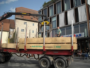 800 Holzbänke wurden in Baden-Württemberg zum Internationalen Jahr der Wälder aufgestellt. So wurde in Böblingen auf dem Elbenplatz eine große Sitzbank aufgestellt. Die Bänke aus Weißtannenholz haben ein Volumen von einem Kubikmeter und sollen die Betrachter mit einer Beschriftung darüber informieren, wie lange es dauert, bis diese Holzmenge im Wald nachwächst. Ein paar Eindrücke dieser Aktion.