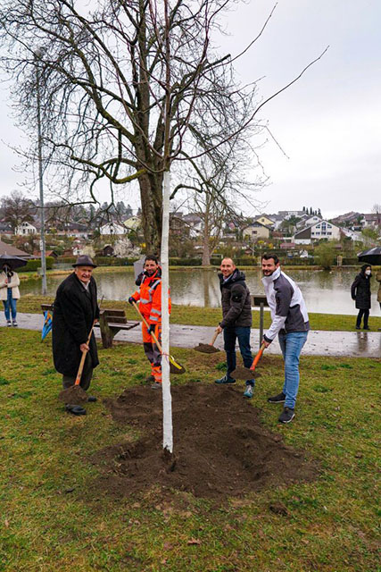erinnern. Die Lindenblüten können ja gerade im Juli durch ihren Duft auf dieses beeindruckende Ereignis aufmerksam machen.“ Ebenfalls anwesend war Sebastian Kayser: „Ich interessiere mich persönlich für Luft- und Raumfahrt und unser Unternehmen setzt sich zudem für Umweltprojekte ein. Daher habe ich diesen Baum gerne gespendet.“