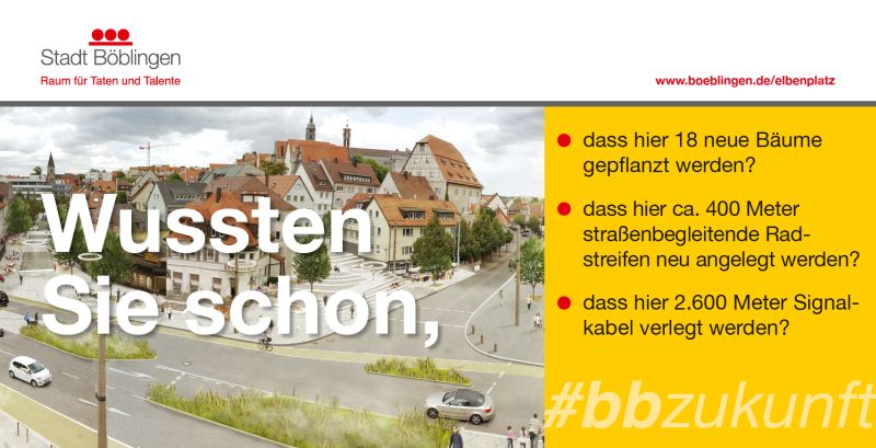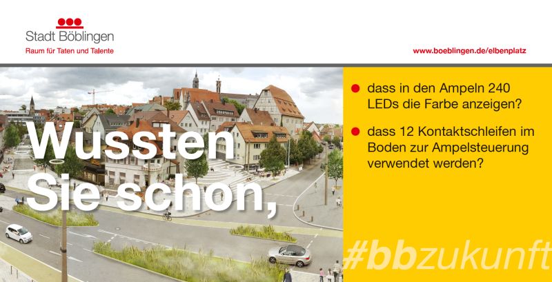 Ausgangspunkt für die Elbenplatz-Umgestaltung ist das Stichwort Mobilität. Böblingen möchte mobilitätsfreundlich für alle Arten der Fortbewegung sein. Vom Auto über den Bus, zu Fuß oder mit dem Fahrrad, angewiesen auf den Rollstuhl oder die Bahn - alle Mobilitätsformen finden Berücksichtigung. Längst vorbei sind die Zeiten, in denen die Fußgängerinnen und Fußgänger in dunkle Unterführungen gelotst oder auf Ebene 1 über dem brummenden Autoverkehr hinwegliefen. Das heißt aber auch: ein Kompromiss unter allen ist nötig, damit für jeden genügend Raum zur Verfügung steht. Für Autofahrende ebenso wie für diejenigen, die gerne das Fahrrad nutzen.