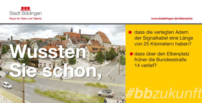 Am Schnittpunkt der drei innerstädtischen Bereiche Altstadt, Unterstadt und Stadtgarten befindet sich der Elbenplatz, Böblingens Mitte an den Seen, zentraler Verknüpfungspunkt der Stadt und der innerstädtischen Verkehre.
