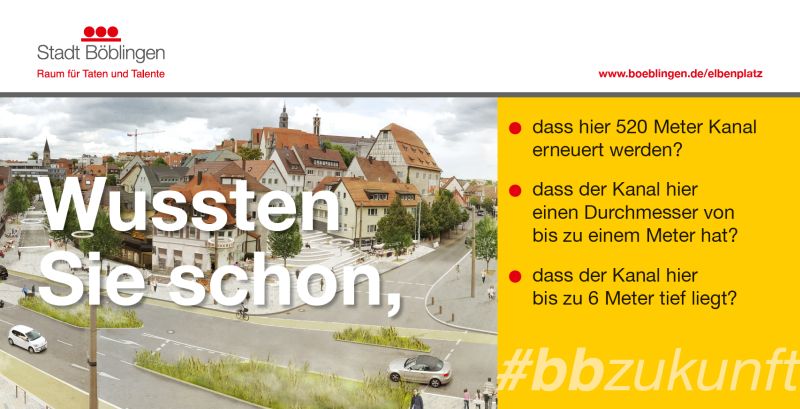 Los geht es mit einem eher unsichtbaren Thema: Der Untergrund unter dem Elbenplatz. Neben den Aspekten der Mobilität und des Klimaschutzes wird der Elbenplatz-Umbau auch zur Erneuerung der städtischen Infrastruktur genutzt. Große Kanäle, die über die Herrenberger Straße, den Elbenplatz und die Wolfgang-Brumme-Alle bis hin zur städtischen Kläranlage verlaufen, befinden sich im Untergrund und werden aktuell durch größere und leistungsfähigere Rohre ersetzt. Warum? Weil Böblingen in den vergangenen Jahrzehnten kräftig gewachsen ist und somit auch mehr Abwasser anfällt, welches entsorgt sein möchte. Zum Kanal kommen dann noch Wasserleitungen, Strom, Gas, Stadttechnik und weitere Versorgungsträger dazu, damit für die nächsten Jahre "Ruhe" herrscht. Viele Gewerke, Dienstleister und Unternehmen müssen hier aufeinander abgestimmt werden, dass der vorgegebene Zeitplan eingehalten werden kann.