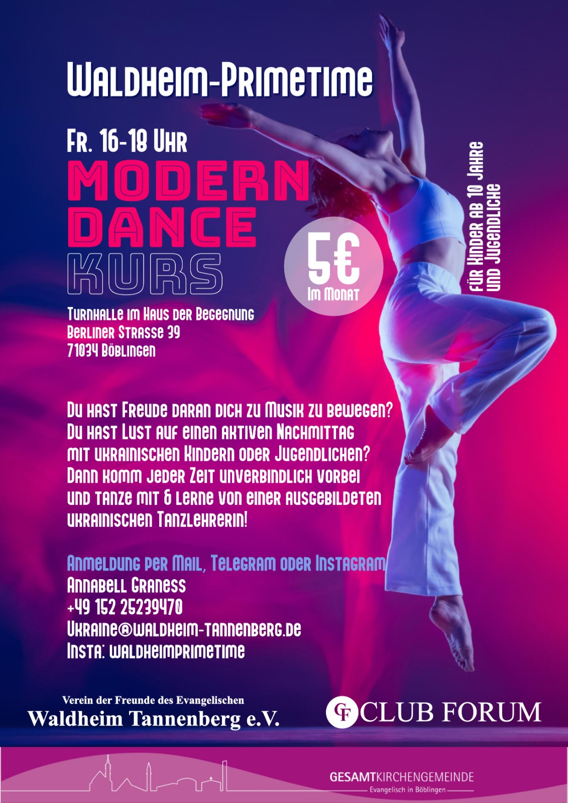 Informationen: Frau Graness, Tel. 0152/ 25239470, E-Mail graness@diakonie-boeblingen.de - Tanzkurs für Kinder ab 10 Jahren